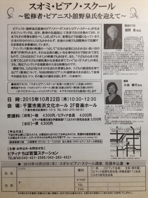 「スオミ・ピアノ・スクール」ピアノセミナーが近づいてまいりました。