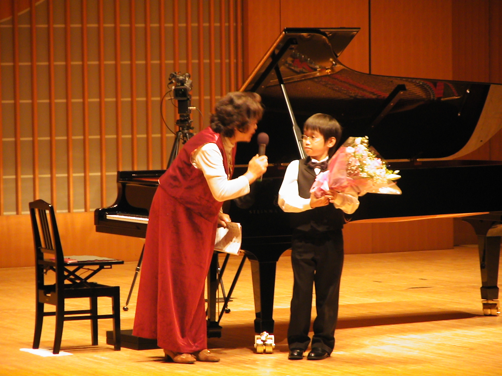 今回のゲスト・本年度E級金賞の翁 康介君、演奏直後の八千代支部長の吉田先生よりのインタビューです。極上の音色で、素直な大変に完成度の高い見事な演奏を披露して下さいました。