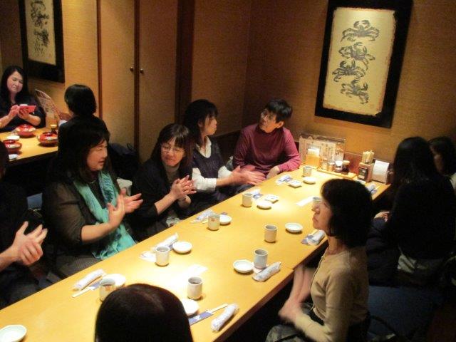 ちば白井「音楽の和」ステーション代表の藤井陽子先生(左手前)というわけで皆さまのご協力により懇親会も無事終了しました。