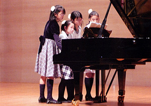 普段慣れ親しんだ二人の連弾以外にも親子や家族、友達同士での四人や五人で一台のピアノを...という大人数での連弾もあり、ジャンルも様々スタイルも様々で、緊張した中にも楽しく微笑ましい雰囲気にあふれていました。