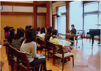 ということから講座は始まりました。「かたい音、柔らかい音、強い音、弱い音などを子供の目線になって感じ、一緒にびっくりしましょう。」「音について話題にすることによって自然な流れを生徒自身が感じることが大切です。」というお話から、改めて初心に返る思いがしました。