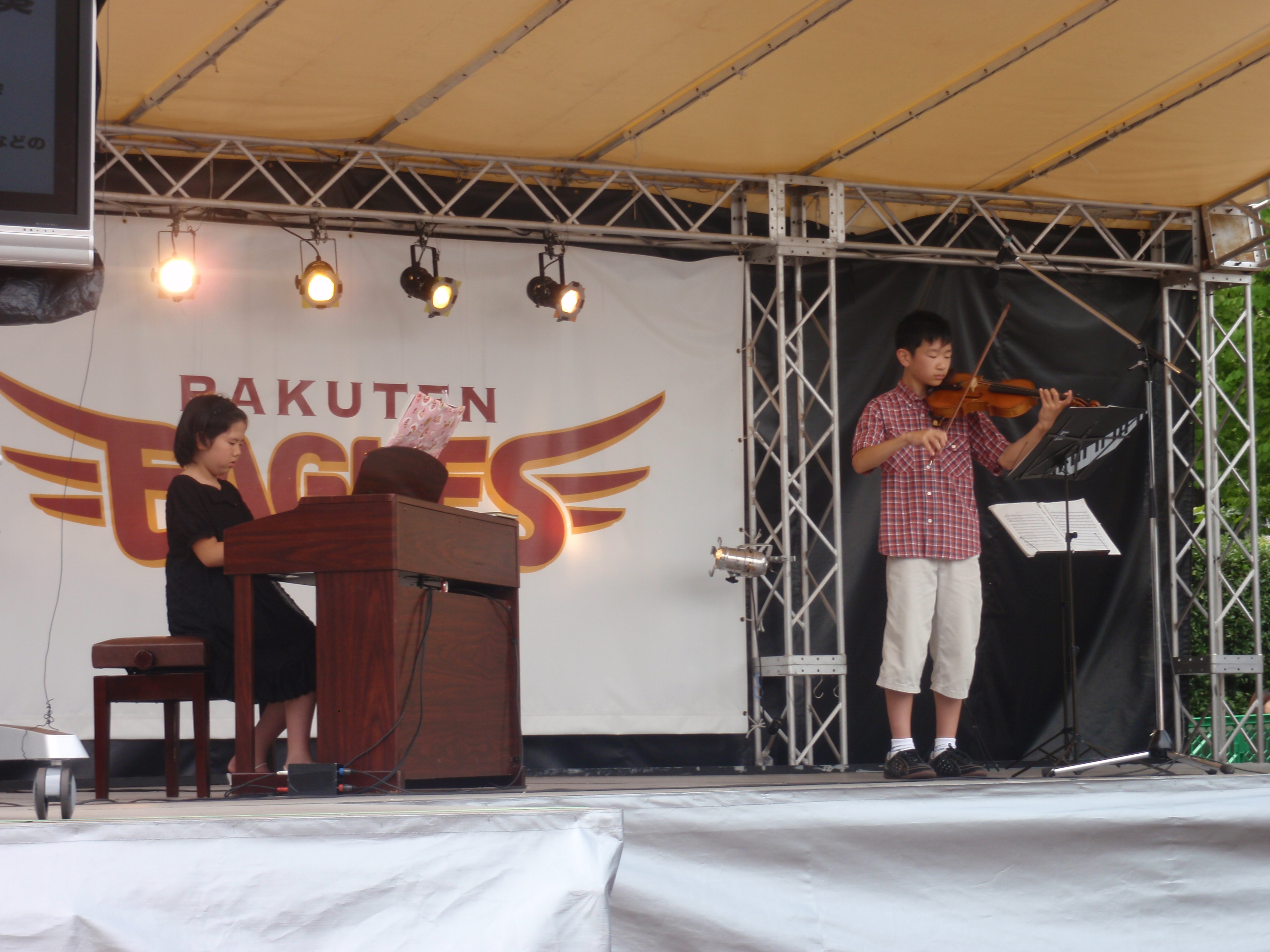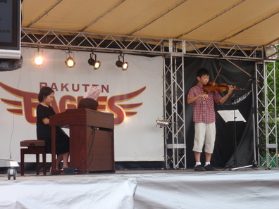 7月4日日曜日、クリネックススタジアム屋外正面ステージで約30分間のおりひめステーションプロモーション演奏を行いました。